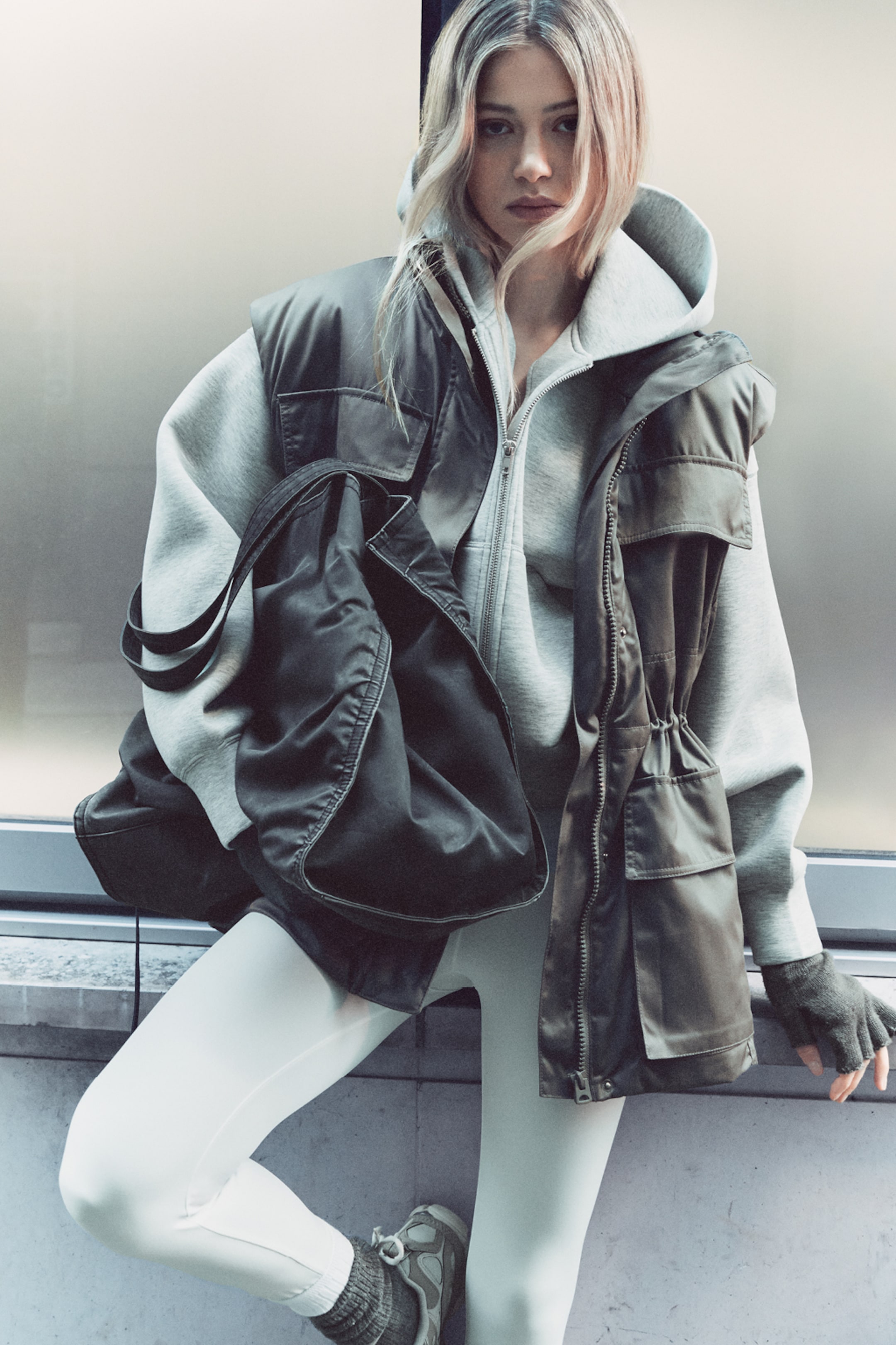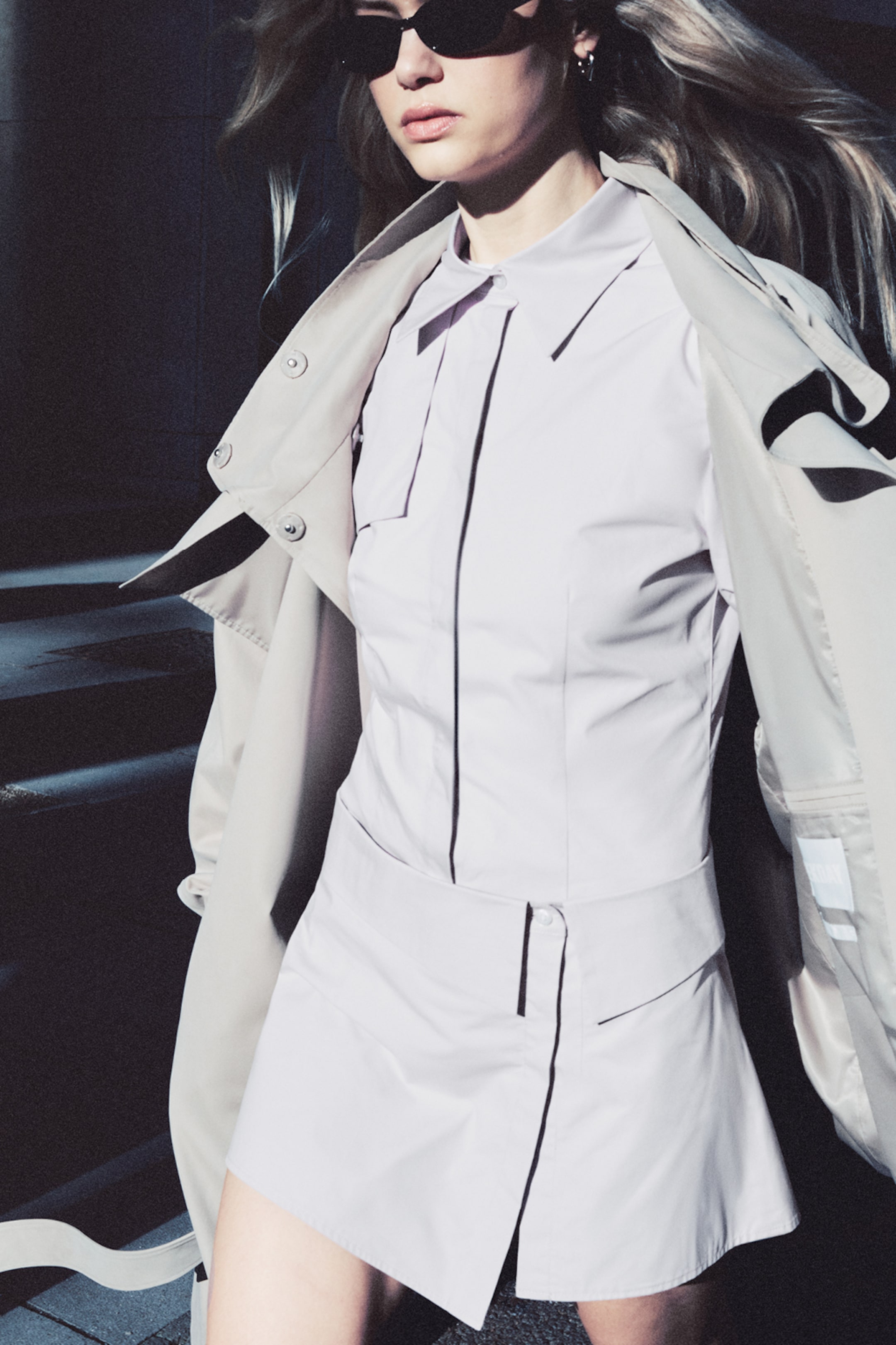Das Model ist 177 cm cm groß und trägt Größe 36.