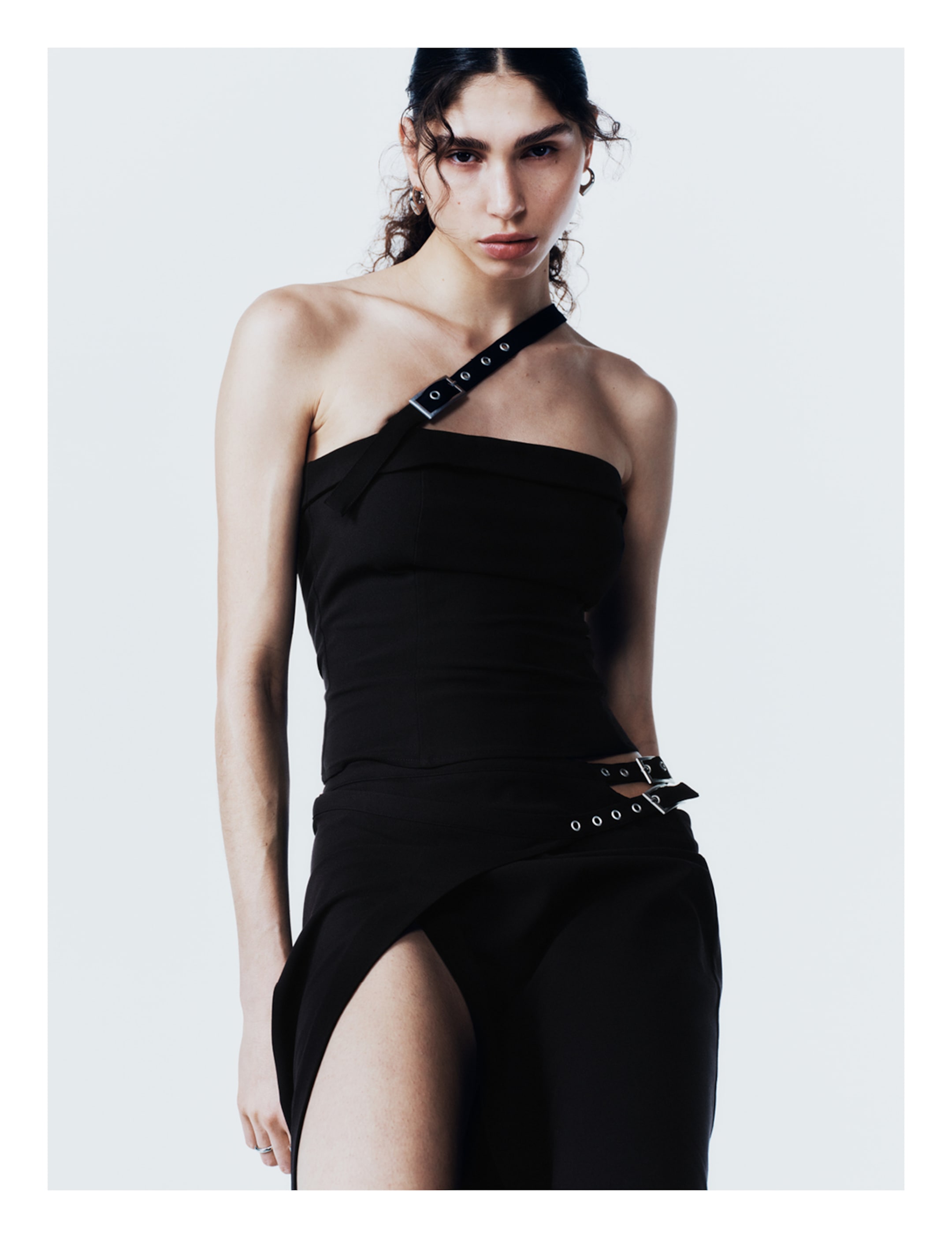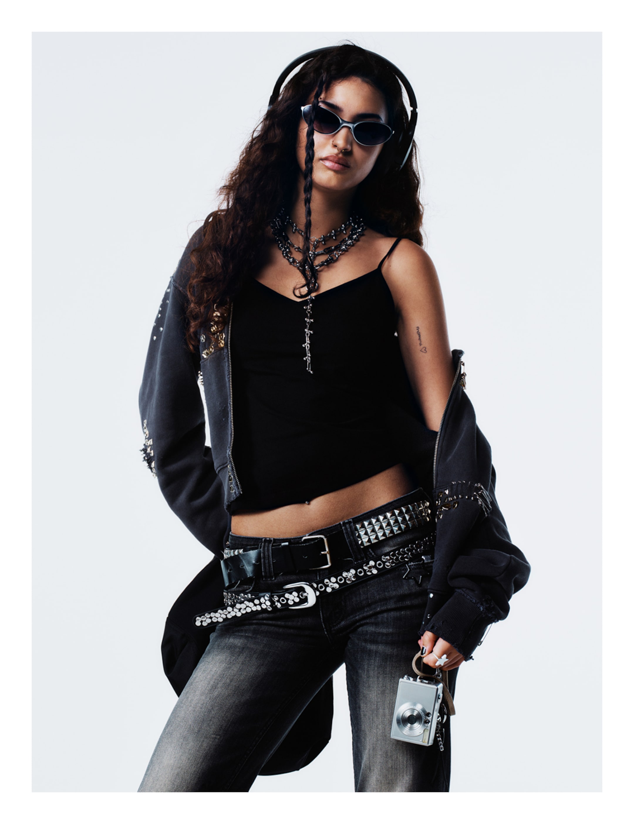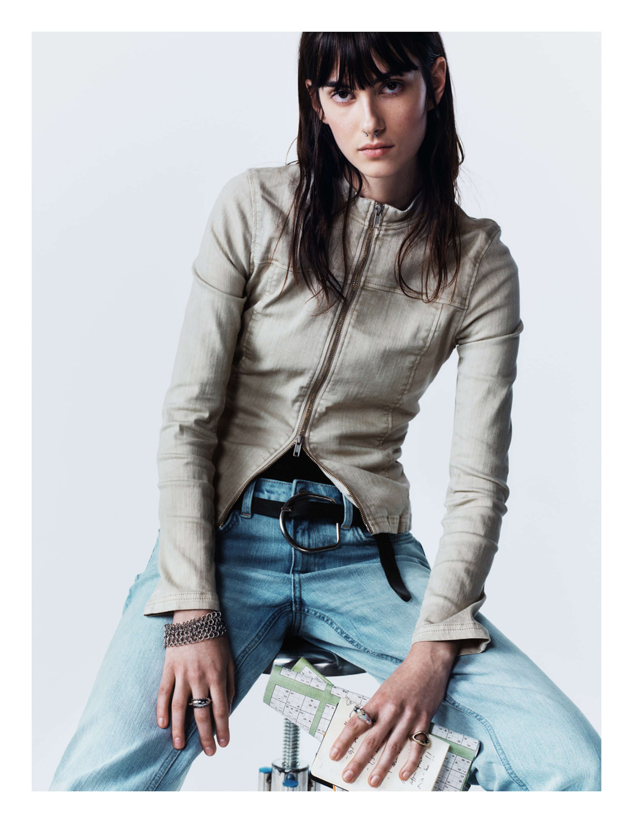 Weekday’s Spring 2026 womenswear campaign embraces contrast and self-expression. Tighter silhouettes meet voluminous jackets, cropped baby tees pair with cut-outs and buckles, and sheer, bedazzled skirts collide with romantic pirate-inspired bloomers. The palette flows through black, greige, dirty beige, and worn-in denim, creating looks that are modern, playful, and street-ready.